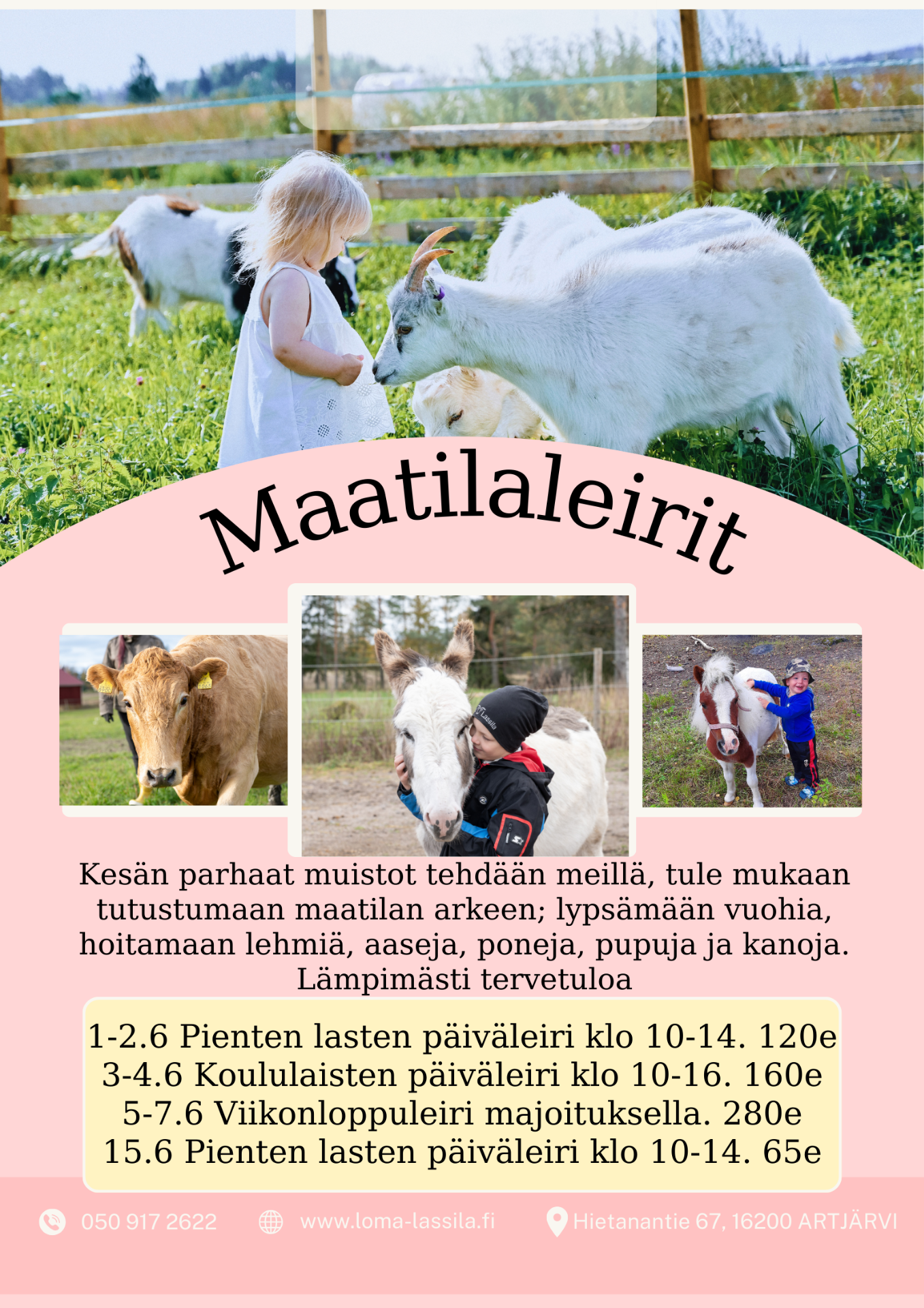 hoidon lisäksi maatila aiheista oheisohjelmaa on runsaasti tarjolla,